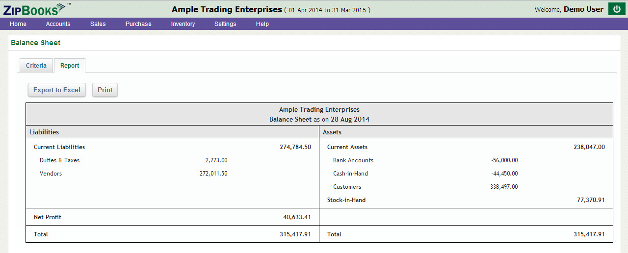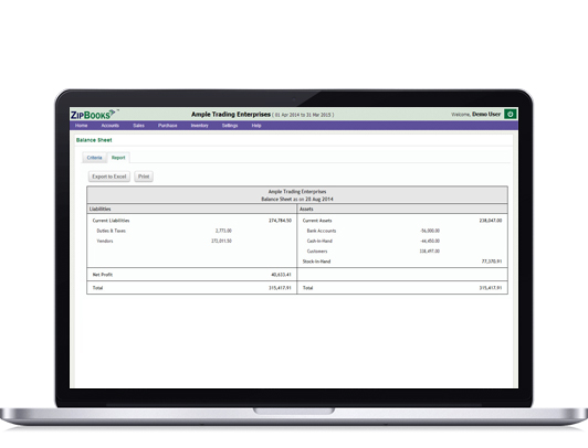 ZipBooks provides comprehensive drill down facility in reports. You can drill through your reports to the underlying transactions. This makes traceability easier for audit purpose. You get accurate and timely information through interactive accounting reports. Following are the accounting reports generated in ZipBooks: