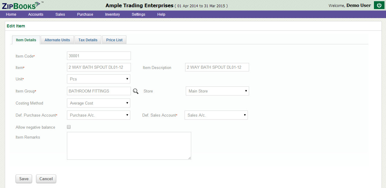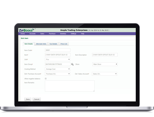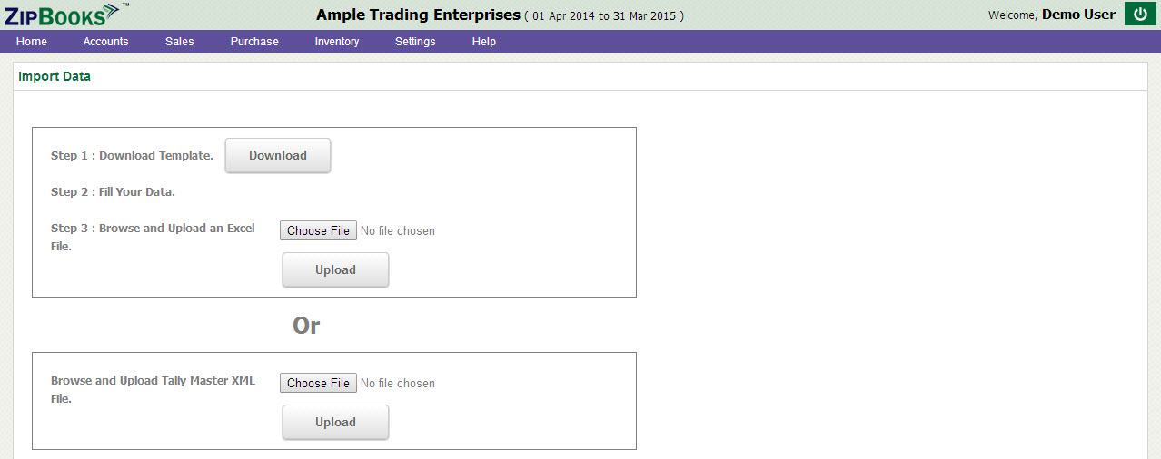 Uploading and downloading your inventory data is quite easy in ZipBooks. You will be able to import and export your inventory data at any time from any place in simple steps. You can export data into Excel and import through the same in ZipBooks. It also has the facility to import data by uploading Tally Master XML File.