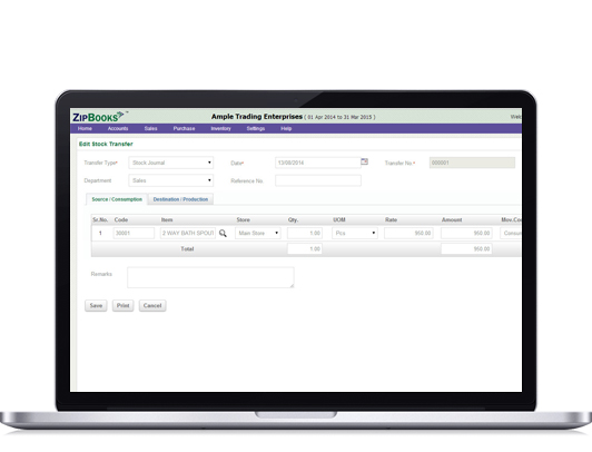 Stock Transfer in ZipBooks allows you to move inventory from one location to another helping you to optimize your inventory investment. It maintains stock transfer with fields capturing detailed information of each store, unit of measurement with the unique code of each item. Thus it does complete tracking of stock movement. Your warehouse replenishment gets automated through ZipBooks' flexible stock transfers. Your stock management also becomes more efficient through accurate forecasting of stores resources and decreased errors.