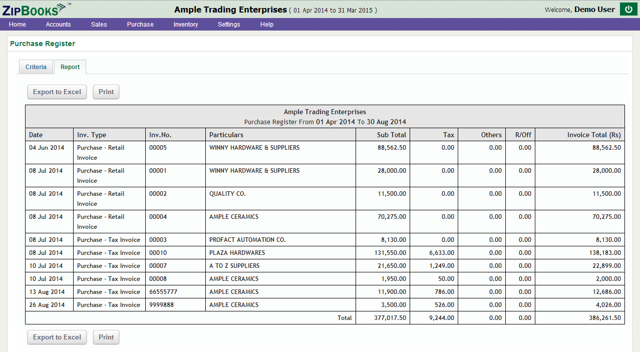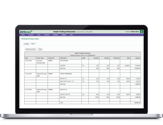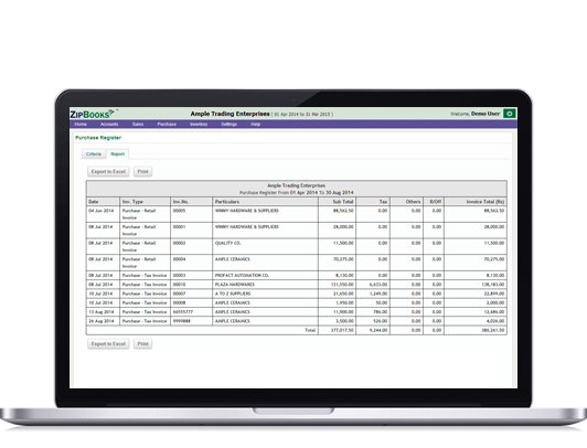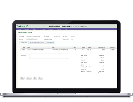 ZipBooks streamlines your purchases thus helping you to cut administrative costs and reduce turnaround time of your purchase to payment process along with bringing transparency and accountability. It also eliminates all your duplicate and redundant expenses. ZipBooks helps to control and manage your whole procurement process to ensure all orders are processed quickly and easily. Being a cloud based system, it gives access to real time purchasing data whenever required. You can even access controls to some specific users. ZipBooks thus helps in speeding up your Purchasing cycle.