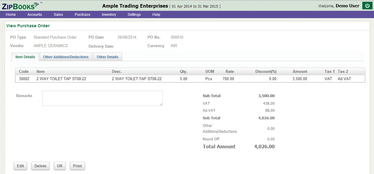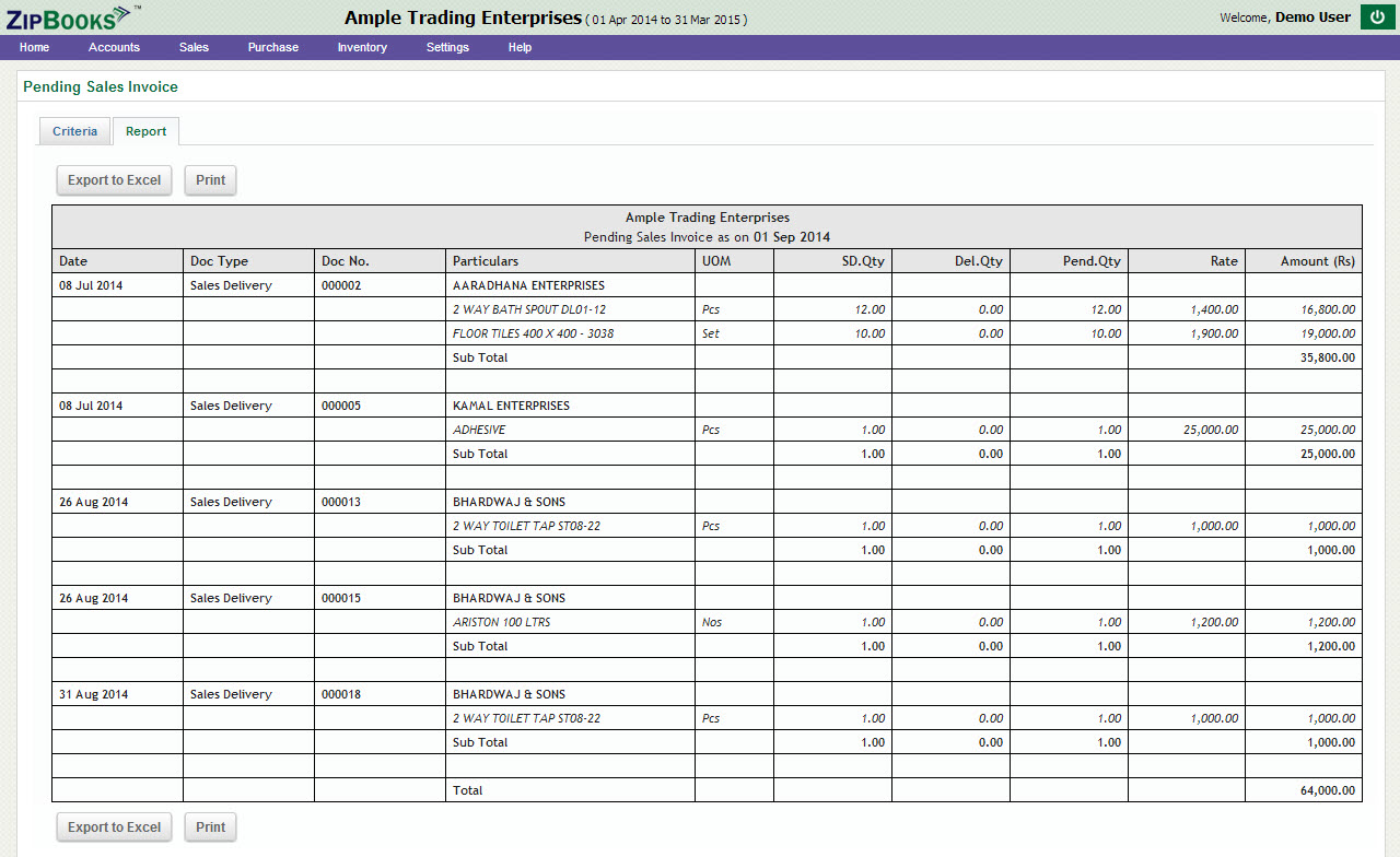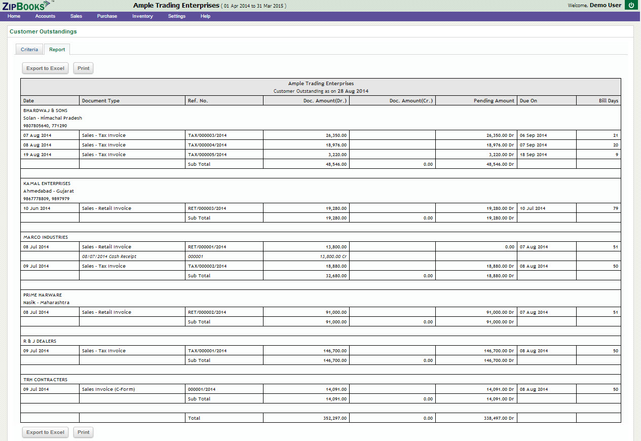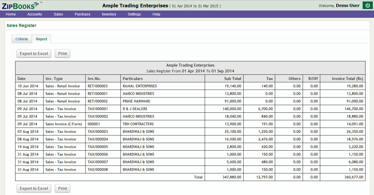 Sales Invoice in ZipBooks results in considerable savings and better control. It frees you from manual handling, helping you to automate and streamline your invoice flow. Chances of errors and duplication gets reduced, which raises the data quality. Through ZipBooks you can even post Sales Invoice with reference to Sales Delivery thus helping you to maintain your organization's sales flow. Sales Invoice prepared through ZipBooks thus results in shorter processing time and better control of delivered goods.