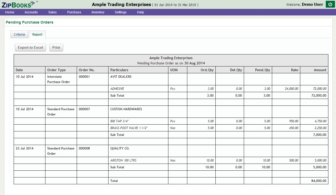 Through ZipBooks powerful reporting system you gain real – time insights of your company's procurement process. This helps you in taking quicker and more accurate strategic decisions. ZipBooks purchase reports provides useful information to support better purchasing decisions and enables the finance department to access relevant information of the whole purchasing cycle quickly. Following Purchase reports can be generated through ZipBooks:
